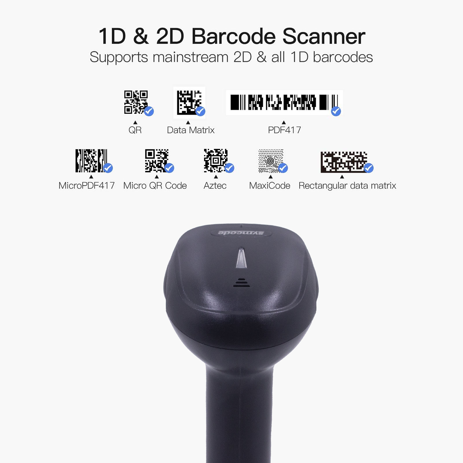 | Decode Capacity | 2D:QR Code,Data Matrix,PDF417,Aztec,Maxicode, HanxinCode etc 1D:EAN,UPC,Code39,Code93,Code128,UCC/EAN 128,Codabar,Interleaved 2 of 5, ITF-6,ITF-14,ISBN, ISSN, MSI-Plessey,GS1 Databar,GS1 Composite Code,Code 11,Industrial 25,Standard 25,Plessey, Matrix 2 of 5 |