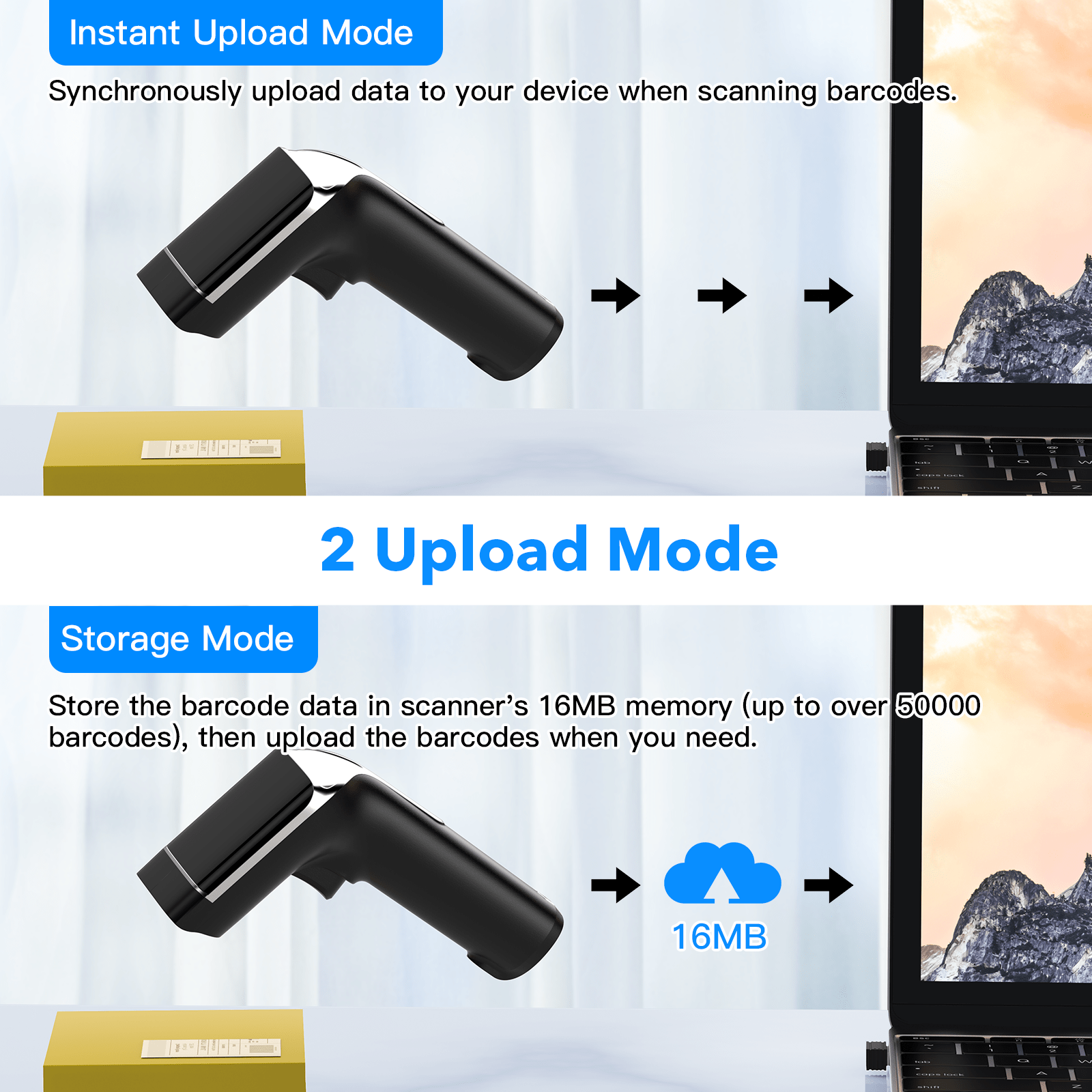 11.Support Trigger mode / Continuous mode / Auto-sense mode,3 kinds scanning modes