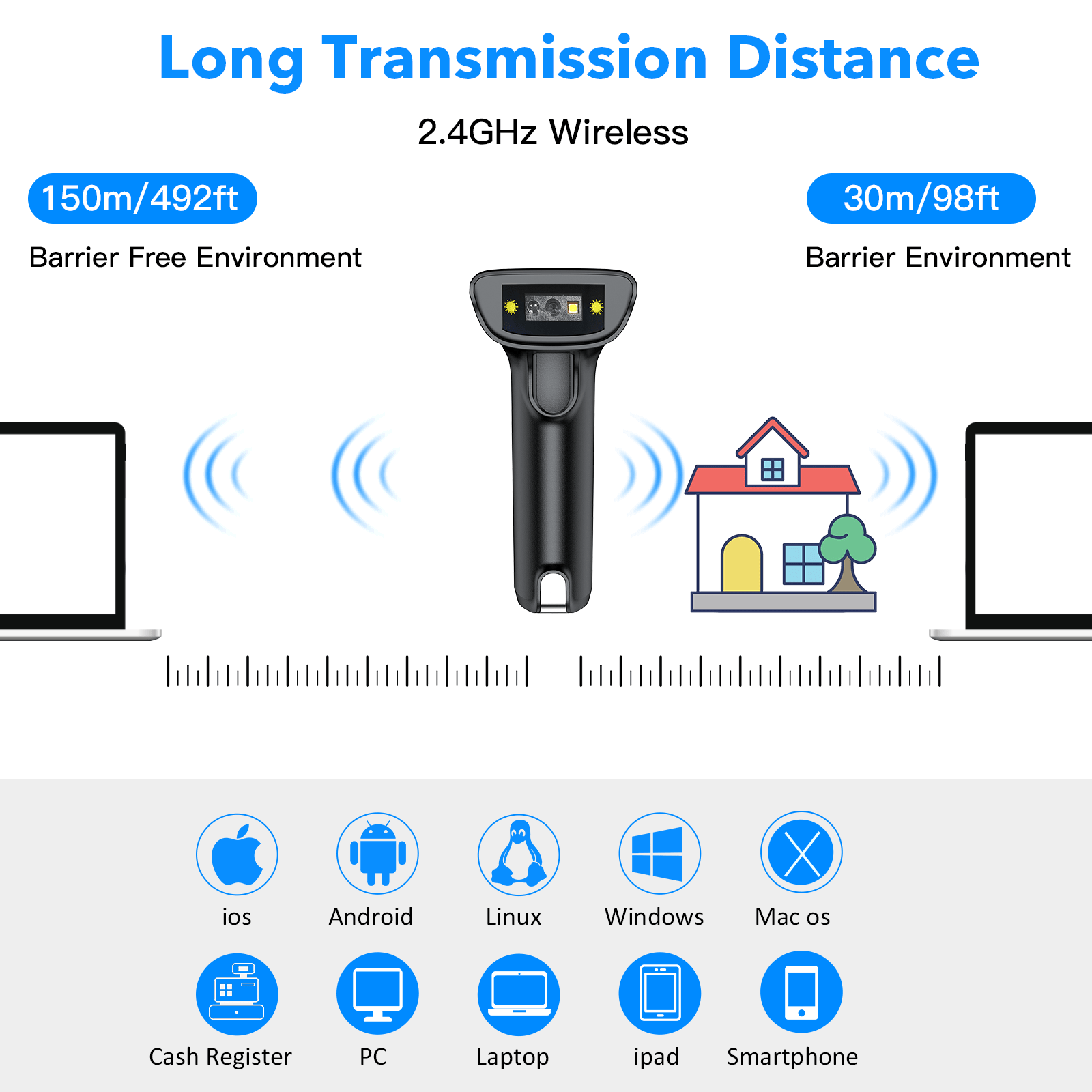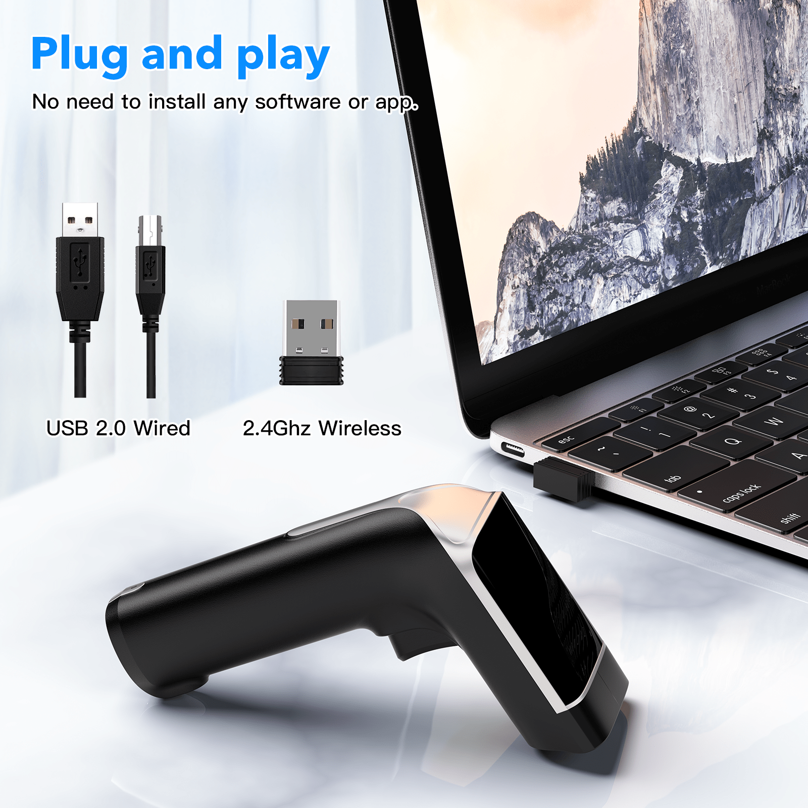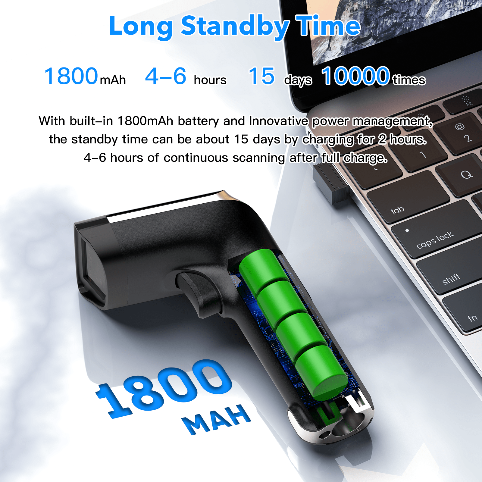 3.Easy to get paired between scanner with wireless receiver.Mini wireless receiver save space. Easy to get paired between scanner with mobile devices via bluetooth |