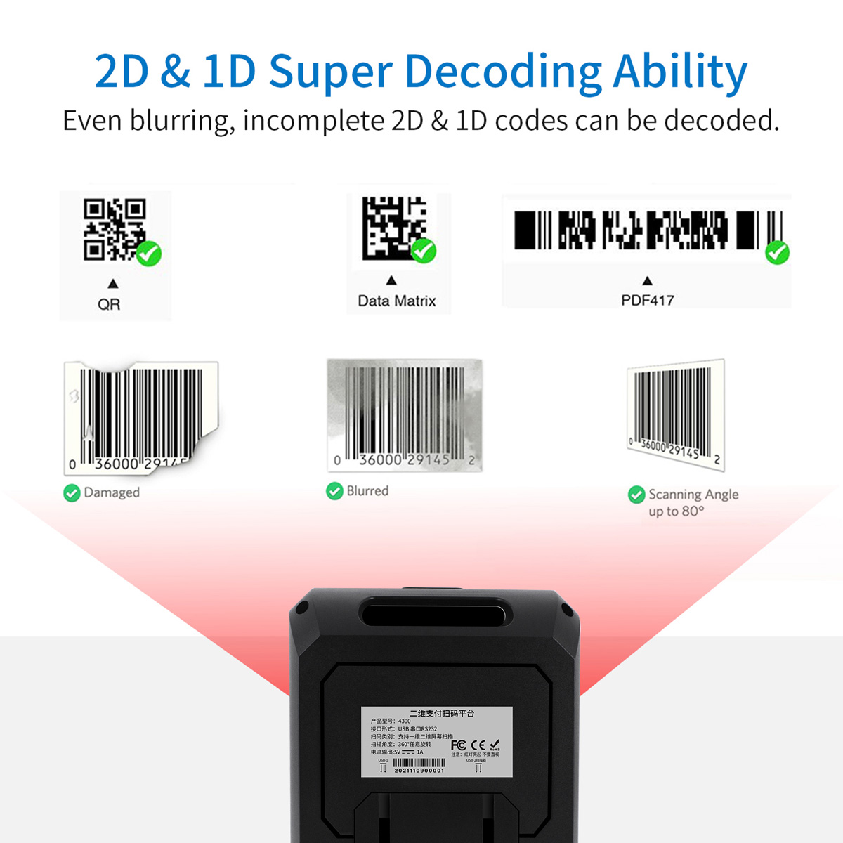 XZH-4300 Desktop 2D Barcode Scanner