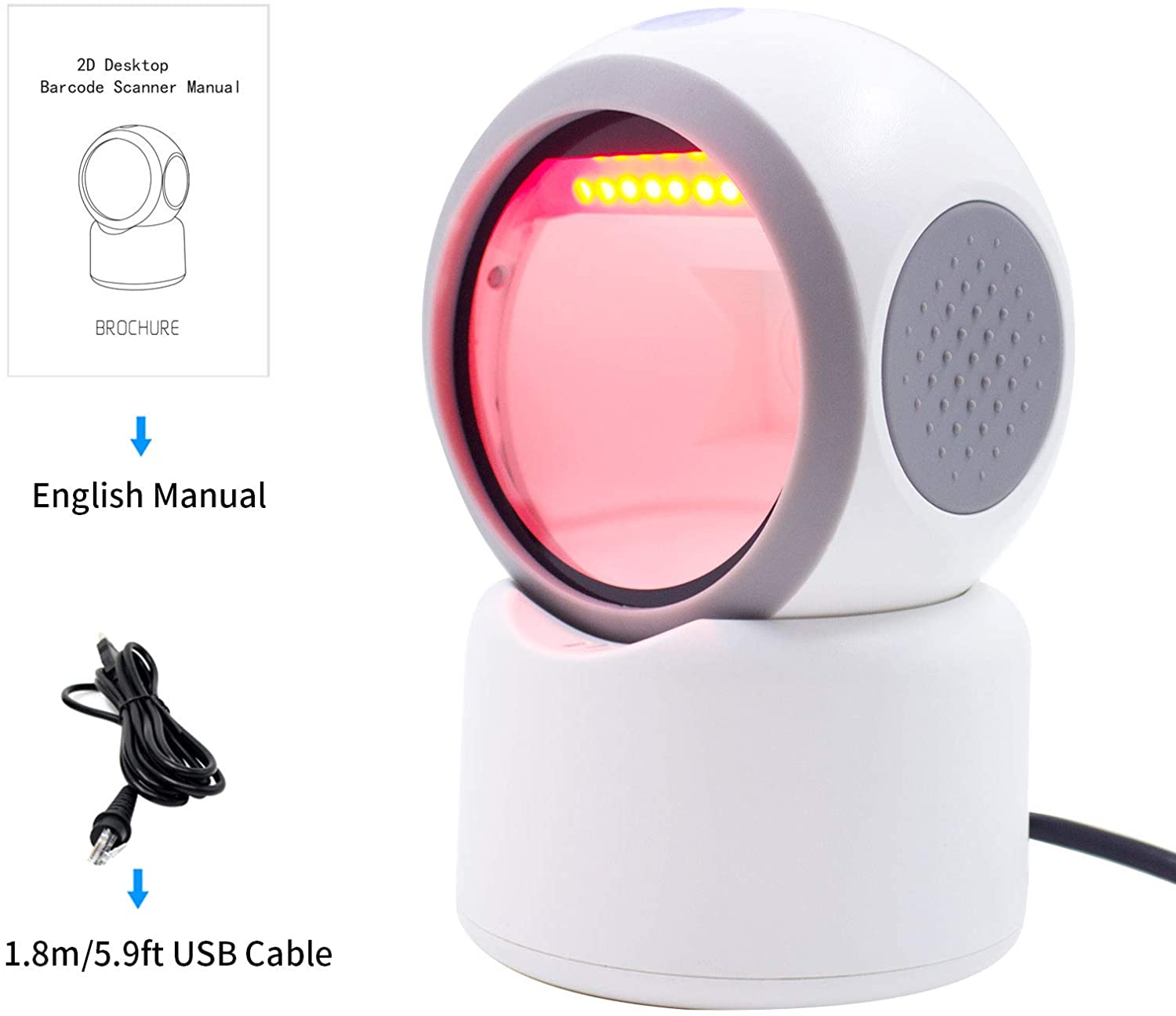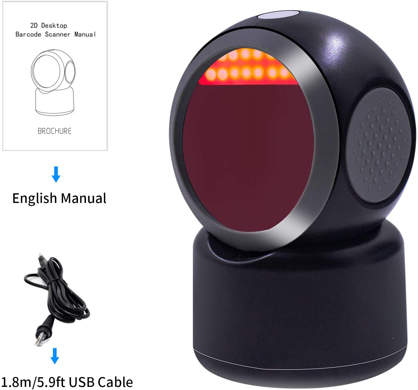 | Weight | 292g(Only Scanner) | | Weight | 362g(With USB cable) | | Size | 84*125*154mm | | Material | ABS+PC | | Color | Black & White | | Interfaces | USB/RS232 | | USB Cable Length | 2 meters | | Packing size | 160mm*95mm*112mm | | Sensor | 640*480 Sensor | | Light Source | 624nm Red LED Light | | Scan Mode | Trigger/Auto-sense/Continuous | | Scan Angle | Roll:360°,Pitch:±55°,Yaw:±55° | | Working Voltage | 5V DC±5% | | Working Current | 140mA | | Print Contrast | ≥30% | | Drop Test | 1.5meters,100times | | Compatible System | Mac/Windows/Android | | Decode Ability | 1D: Code39(Code 32),Code128,Code,UPC/EAN/JAN 93,,Interleaved 2 of 5,Codabar,Code 11 Matrix 2 of 5,Industrial 25,GS1Databar China Post(Hong Kong 2 of 5), NEC 2 of 5,,MSI Plessey,(RSS)Korea Post,Trioptic code39, GS1 Composite Code,Telepen 2D:QR Code, Data Matrix, PDF417 MicroPDF417, Aztec Code, Codablock, MaxiCode,汉信(Chinese Sensible Code) | |